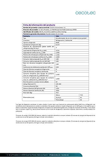 - Aire acondicionado portátil con una gran capacidad de enfriamiento de 12000 BTU. Dicha capacidad facilita conseguir la temperatura deseada en la estancia de manera rápida y eficaz. La bomba de calor del aire acondicionado permite también ser utilizado en invierno con el fin de aumentar la temperatura de la estancia en la cual sea ubicado. Su gran área de cobertura de entre 26 m² y 28 m², dependiendo de la altura y la morfología de la estancia, permite adaptar y modificar la temperatura de la estancia a los grados deseados, ya sea para reducir los grados en verano, o aumentarlos en invierno.