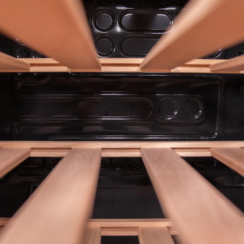 - 34 botellas. Gran capacidad interior con sus 80L. Espacio para 34 botellas. Compresor: Sistema con el que mantendrás la temperatura ideal en todo momento. Mantén el vino a la temperatura adecuada en todo momento.