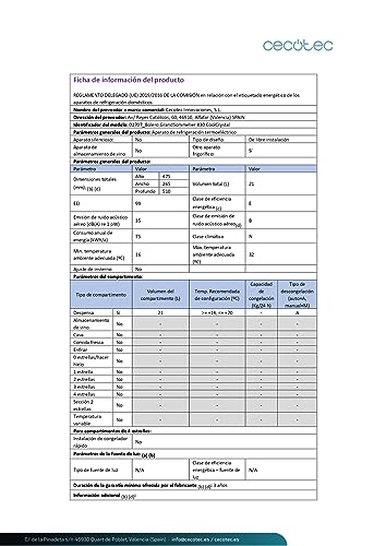 - 8 botellas. Espacio interior para 8 botellas. Termoeléctrica. Bajo nivel sonoro y alto rendimiento. Enfría mejor y más rápido, y no te preocupes por ruidos molestos.