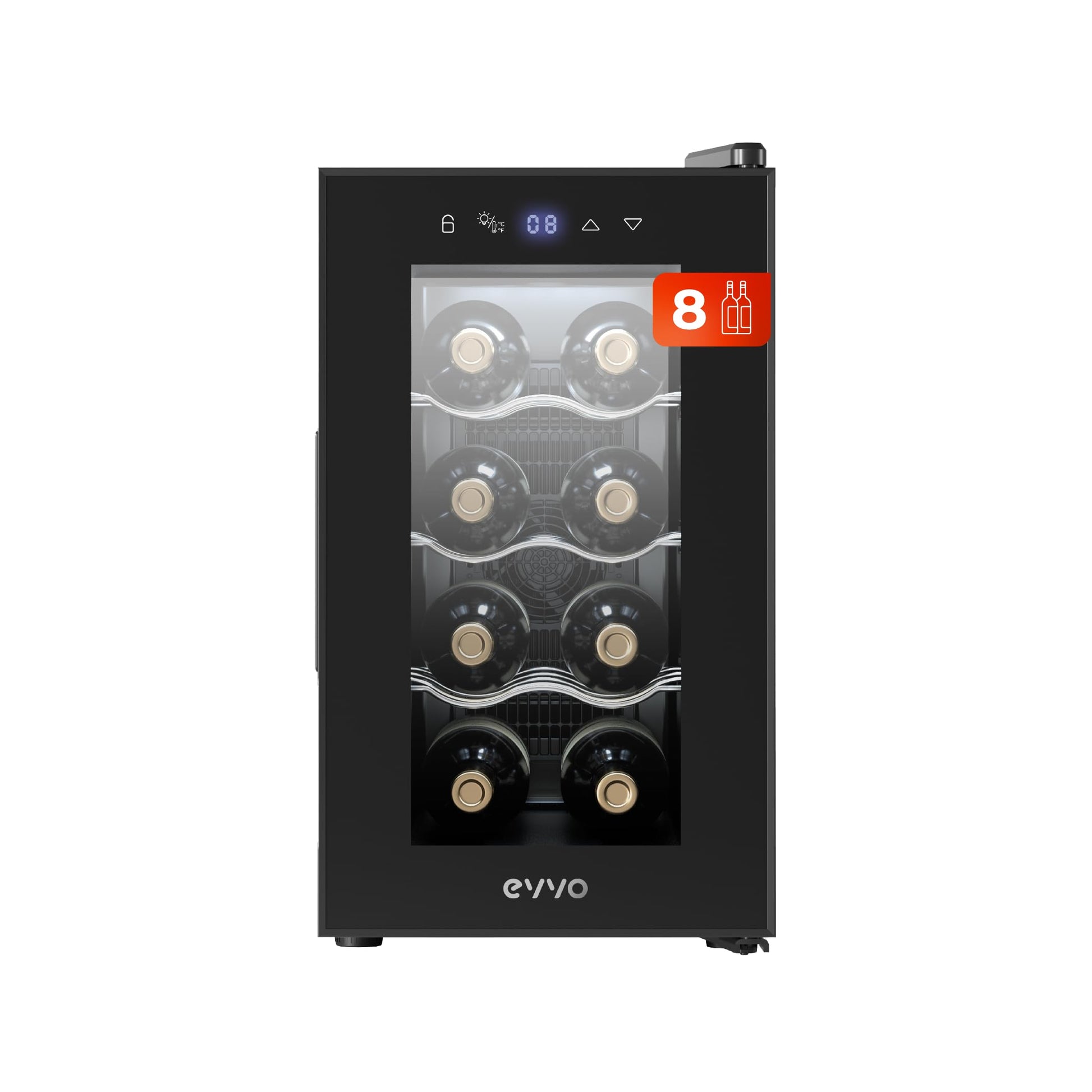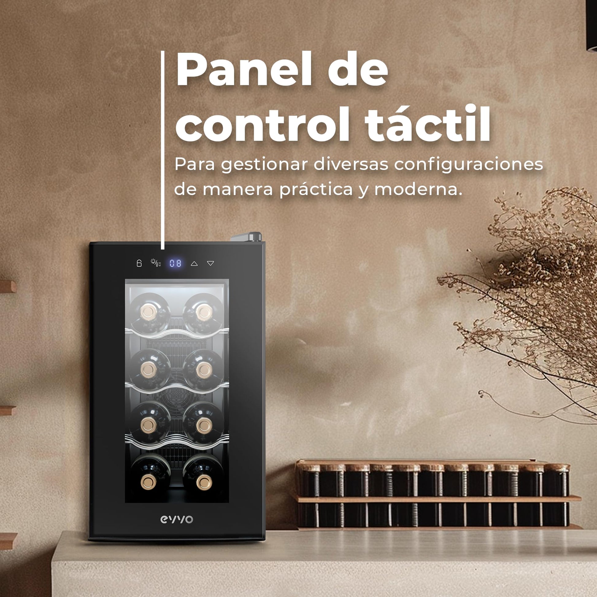 EVVO Vinoteca 8 Botellas VT8, Botellero Vertical, Termoeléctrica, Temperatura 8-18ºC, Pantalla Táctil, Display Interior, Silenciosa 35 dB