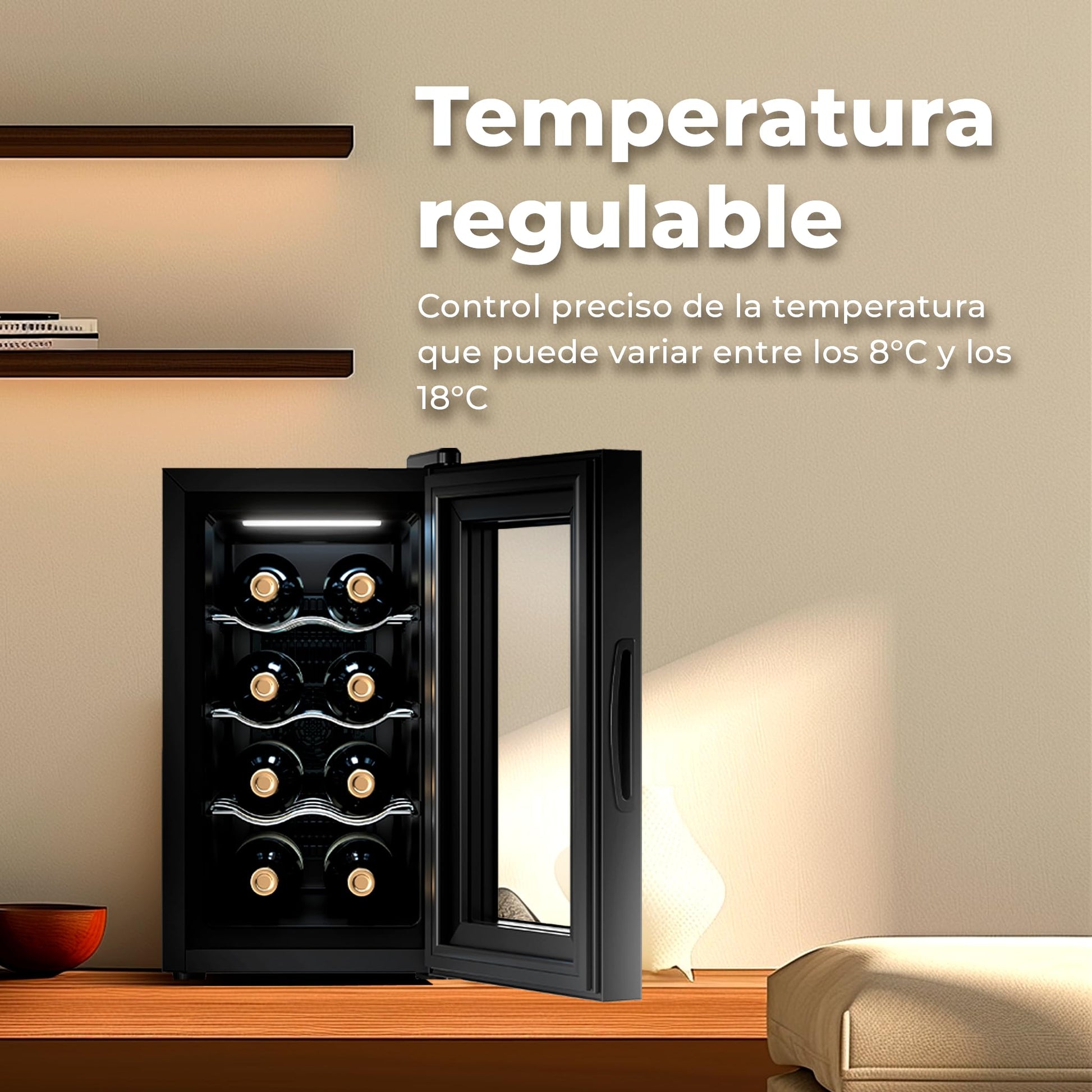 - 🍷 Capacidad para 8 Botellas: Enfriador vino almacena y exhibe hasta 8 botellas de tu selección de vinos en este compacto pero espacioso electrodoméstico.