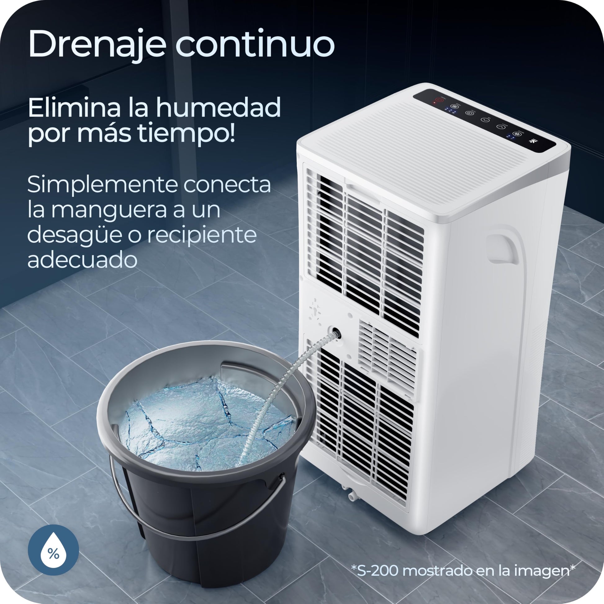 - POTENTE REFRIGERACIÓN COMPACTA – Combate el calor con el S-95, un aire acondicionado 3 en 1 que enfría rápidamente hasta 16 ºC. Con 7000 BTU, refresca estancias grandes de hasta 68 m³ a 290 m³/h. Ideal para dormitorios, salones u oficinas.